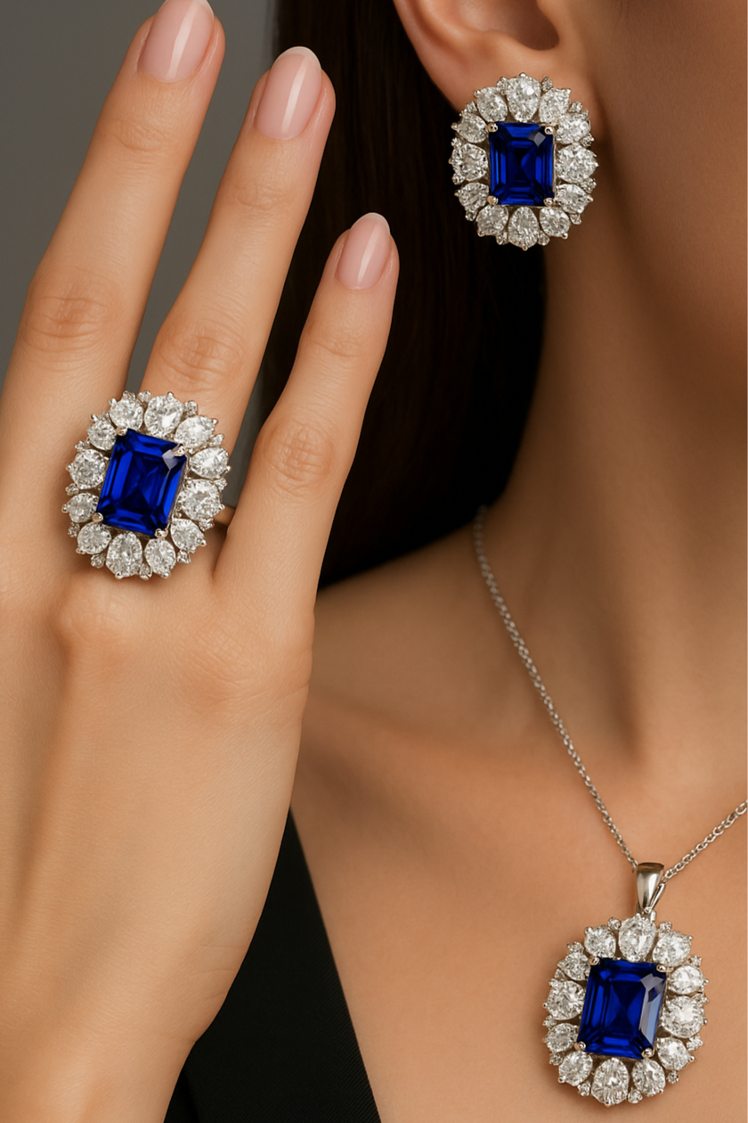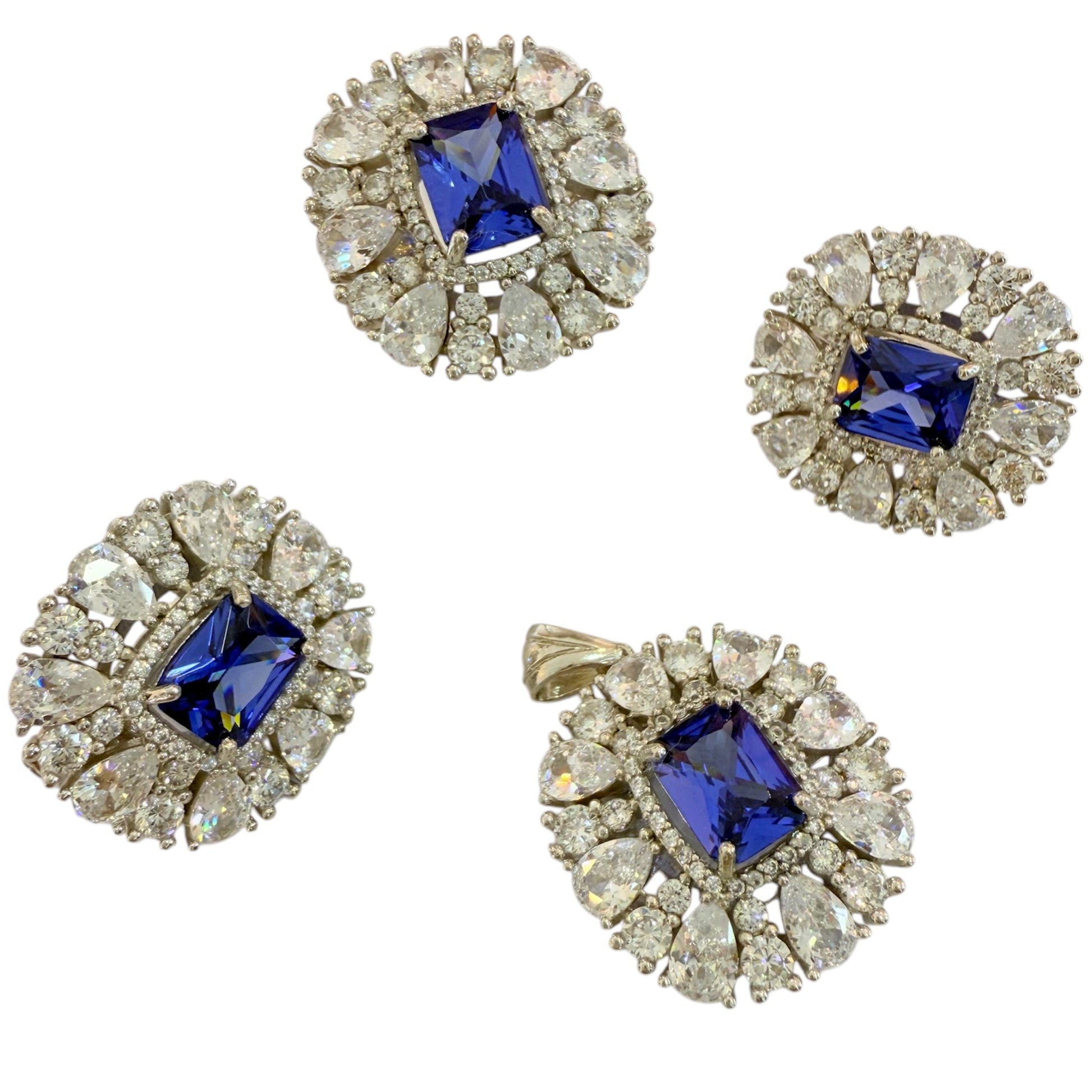 juego de plata 925 turca con piedra tanzanita y zirconias